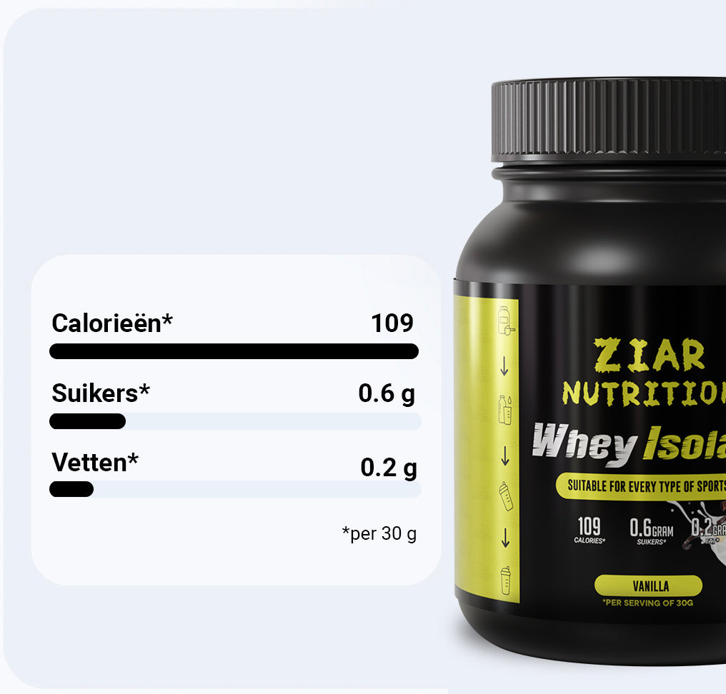 Onze Whey Isolate is de zuiverste vorm van wei-eiwit — ontwikkeld voor iedereen die alleen het beste wil voor zijn herstel en spieropbouw. Met een extreem hoog eiwitgehalte, minimale vetten en suikers, en een snelle opname ondersteunt deze shake optimaal je spieren na elke training. Licht, soepel oplosbaar en heerlijk van smaak: de perfecte keuze voor sporters die kwaliteit, resultaat en smaak willen combineren.