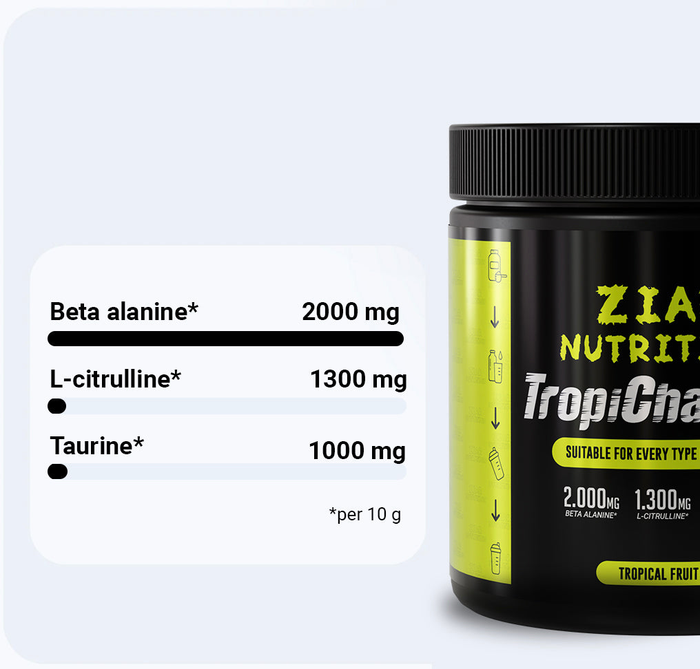 Tropi charge X is ontworpen om jou dat extra duwtje te geven vóór elke training. De krachtige combinatie van cafeïne, beta-alanine, L-citrulline en vitamines zorgt voor maximale focus, meer uithoudingsvermogen en een intensere pomp. Of je nu traint in de sportschool of thuis, deze formule helpt je om elke set met energie en concentratie te knallen. Verfrissend van smaak en snel voelbaar — jouw ultieme boost voor maximale prestaties.